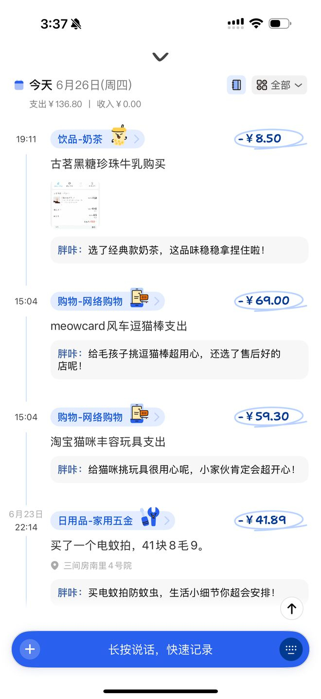 我故意给小胖咔提升了难度:不仅让它补记昨天的账,还一口气报了好几项消费,没想到这也难不住它。