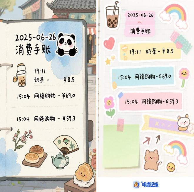 除了能生成年轻人最爱的MBTI测试答案,最近咔皮记账还推出了一个更有趣的功能“AI手帐”。