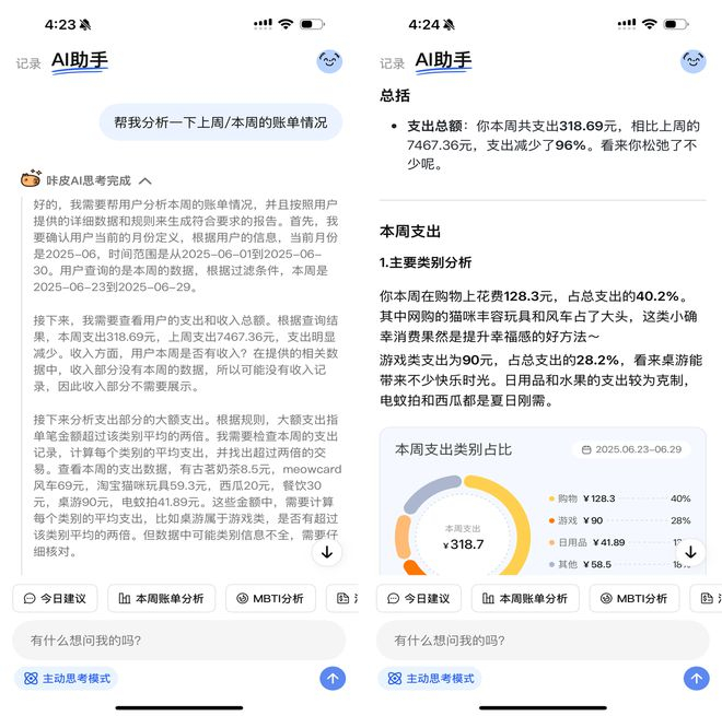 本来只是冲着“轻松记账”开始使用咔皮记账的我,在用了一周后,彻底被它的AI分析功能圈粉。