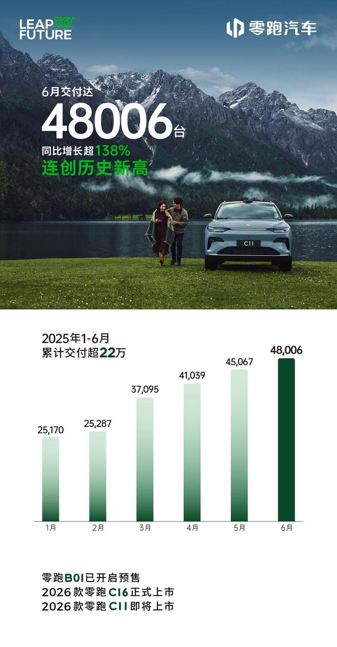 零跑汽车 6 月全系交付 48006 台同比增长超 138% 创历史新高