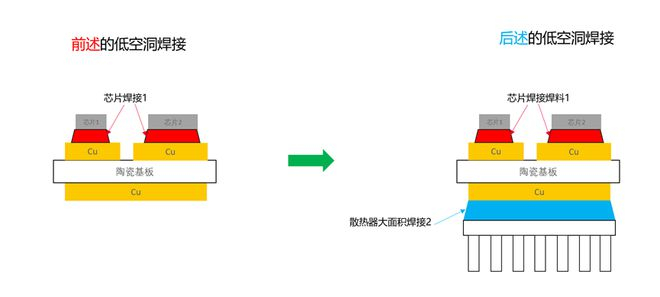 第二个难点,是要开发模组基板与散热器的“低空洞率大面积焊接”的工艺。光伏逆变器的模组功率密度很高,单个模组要扛住高达六七百安培的大电流,运行时芯片温度可达150摄氏度以上。焊点一旦有空洞,就会被击穿,热量散不出去,芯片就会“发烧”罢工,甚至击穿芯片造成短路。因此,焊接对空洞率要求极高,模组和散热器焊接核心区域的空洞率即使不到3%,散热性能也会大幅下降。