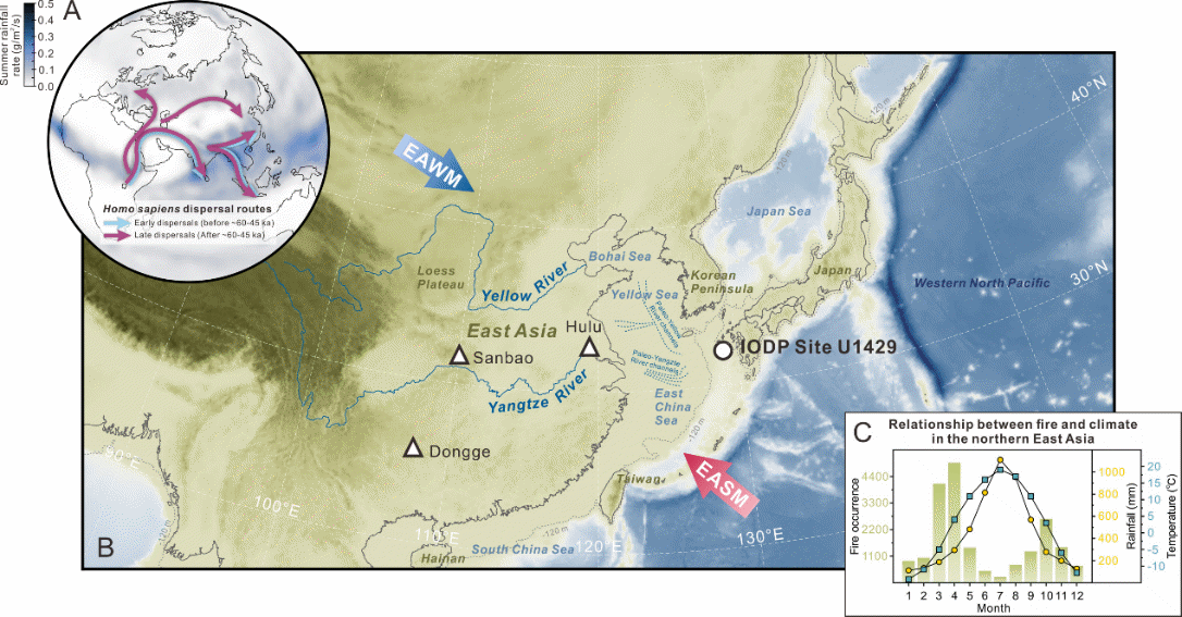 研究站位 IODP U1429、火与东亚季风气候的关系及晚更新世人类走出非洲的路线