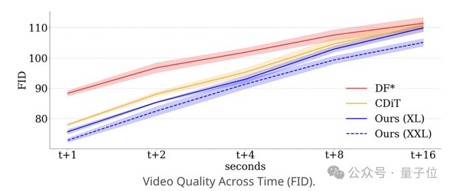长期视频生成方面,在16秒长序列预测时,PEVA的FID值相比Diffusion Forcing(DF低15%以上,生成视频的时序连贯性显著增强。