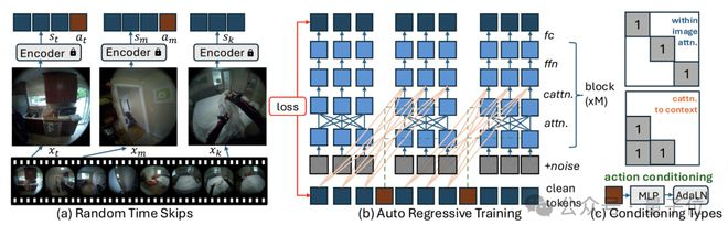 该模型采用自回归扩散训练,通过强制输入真实历史帧编码,结合序列级损失函数,确保生成帧在动作驱动下保持时序连贯(如连续伸手动作的视觉轨迹平滑)。