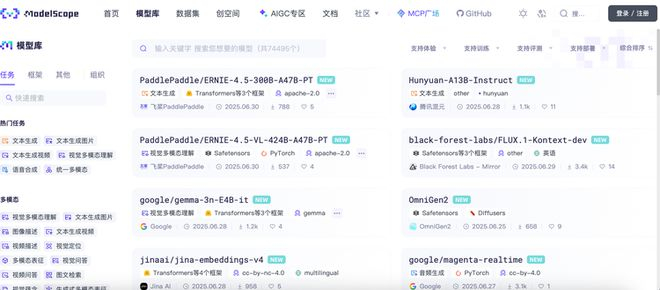 从最初主要聚焦语言模型,魔搭的技术版图逐步扩展到LLM、对话、语音、文生图、图生视频、AI作曲等多个垂直领域。这种扩张紧跟AI技术发展的时代脉络——当AIGC成为行业热点时,平台迅速增加了AIGC专区;当多模态应用兴起时,相关工具链得到系统性完善;当端云协同成为技术趋势时,开始提供专门的端侧模型支持。开发者需要啥,这个平台就会赶快提供啥。