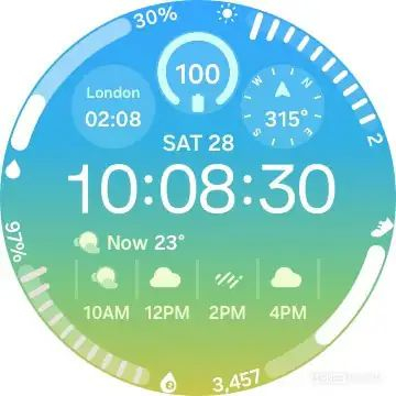 渐变信息板表盘:柔和渐变随时间变化,模仿地球和天空的色彩变化,营造自然氛围。