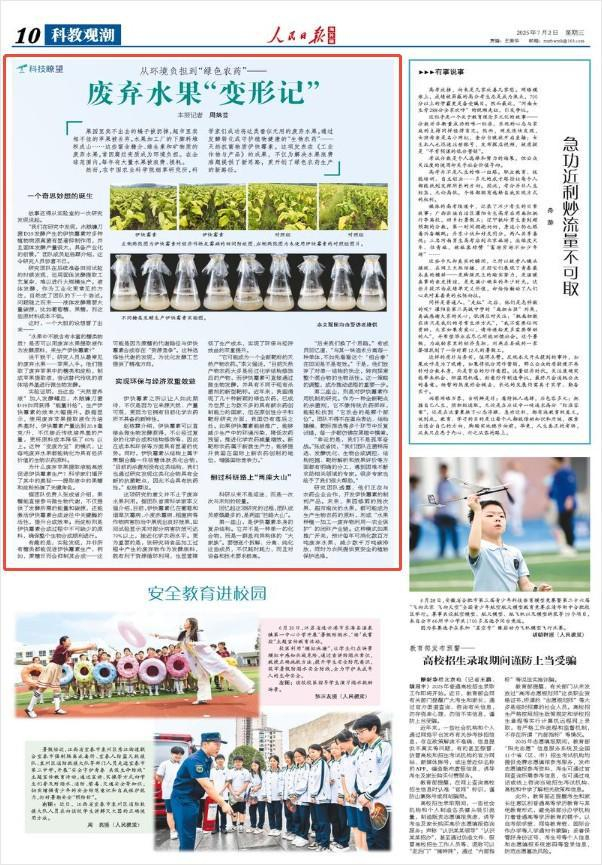 果园里卖不出去的橘子被扔掉,超市里卖相不佳的苹果被丢弃,水果加工厂的下脚料堆积成山……这些富含糖分、维生素和矿物质的废弃水果,常因腐烂变质成为环境负担。在全球范围内,每年有大量水果被浪费、损耗。