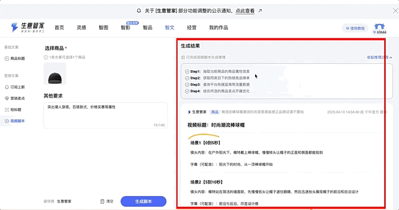 在信息爆炸的营销战场,每个标题、关键词都是影响转化率的关键。生意管家的智能文案功能,无论是打磨爆款标题,还是创作吸睛短视频脚本,从基础文案到订阅上新营销文案,做到了核心场景全覆盖。同时,依托智能算法精准抓取热点,深度解析竞品优势,产出高转化的标题与营销文案。