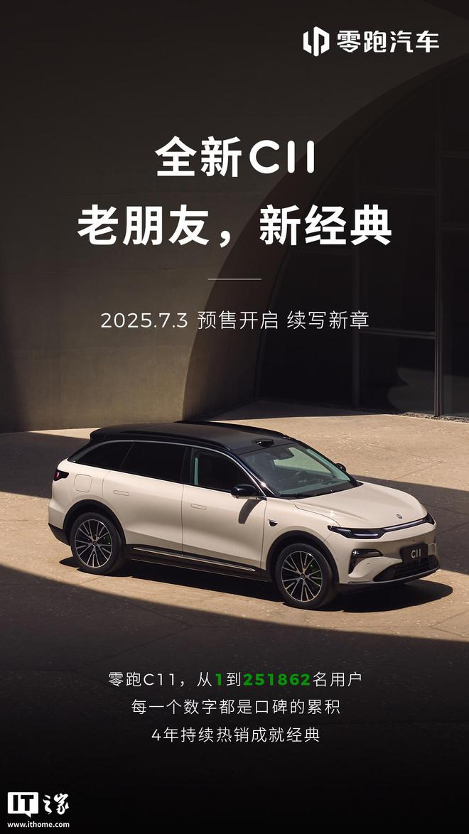 IT之家 7 月 2 日消息,零跑宣布旗下新款 C11车型将于 7 月 3 日开启预售,目前该版本车型已现身工信部,显示该车将调整前脸 / 大灯细节,同步调整汽车尺寸。
