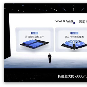更具体些,vivo X Fold5 在展开厚度 4.3mm、折叠厚度 9.2mm 的折叠机身中,塞入了等效 6000mAh 的蓝海电池;而荣耀 Magic V5 则将 6100mAh 的「青海湖刀片电池」装进了展开厚度 4.35mm、折叠厚度 8.8mm 的折叠机身中。