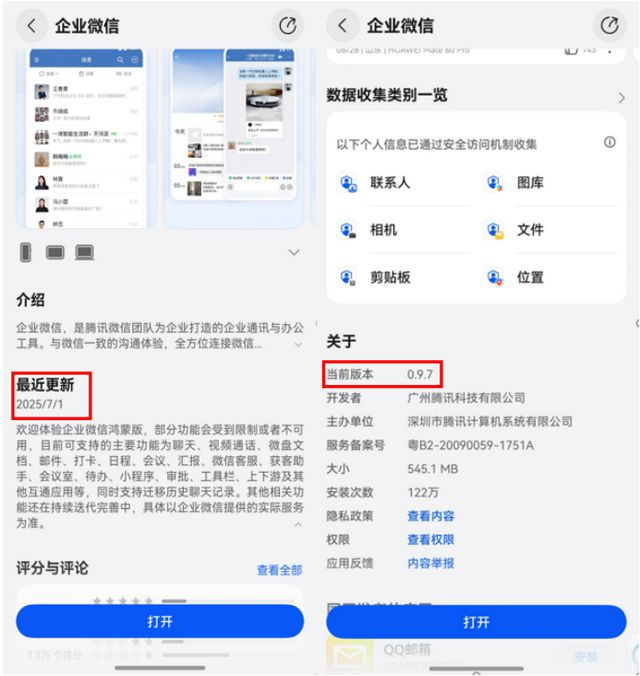自上架以来,企业微信鸿蒙版持续倾听用户反馈与建议,不断优化升级功能和服务。同时通过深度融合鸿蒙5的独特优势,接入了安全访问机制、应用调用系统原相机等创新功能,实现了隐私保护能力和拍照、视频沟通体验的全新升级。目前,企业微信鸿蒙版已适配手机、平板、鸿蒙电脑等设备,并且正在加速迭代,期待接下来为用户带来更多创新功能和惊喜体验。