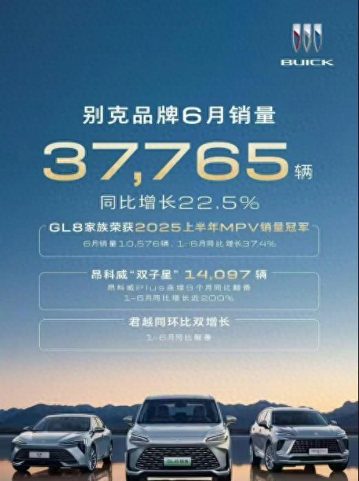 通用汽车增长,上汽通用别克公布了最新的销量“成绩单”。据官方信息显示,别克品牌6月销量达到37765辆,同比增长22.5%。其中,别克昂科威家族月销量突破1.4万辆,别克君越同比、环比均实现增长。