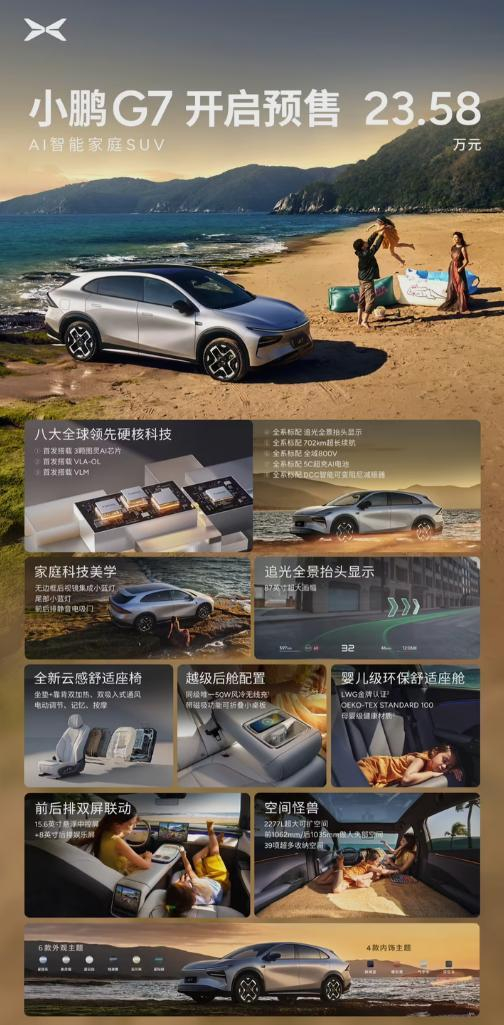 小鹏G7:7月3日上市,智驾+舒适双升级
