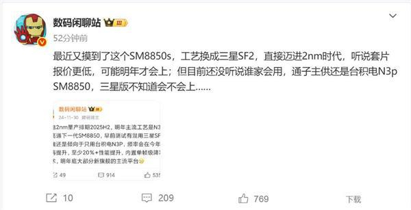 他还爆料,目前没有厂商采购三星2nm版骁龙8 Elite 2,高通主要供货的是台积电3nm版。