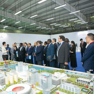 6月30日,使节们在低空经济展区驻足观看。(中国航天科技集团供图)