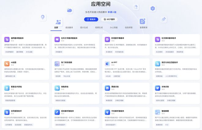 智谱还在今天发布了全新生态平台Agent应用空间,这是一个面向企业客户和开发者的AI Agent能力聚合平台。