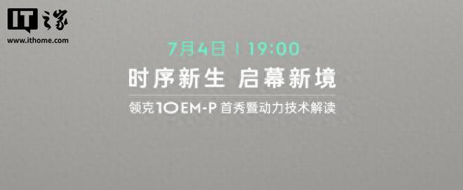 IT之家 7 月 2 日消息,领克汽车发布了旗下全新中大型轿车领克 10 EM-P 的内饰预告图,该车搭载由 1.5T 发动机和电机组成的插电式混合动力系统,将于 7 月 4 日亮相,预计今年第三季度正式上市。