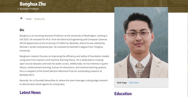 Banghua Zhu 本科毕业于清华大学电子工程系,后赴美国加州大学伯克利分校攻读电气工程与计算机科学博士,师从著名学者 Michael I. Jordan 和 Jiantao Jiao。