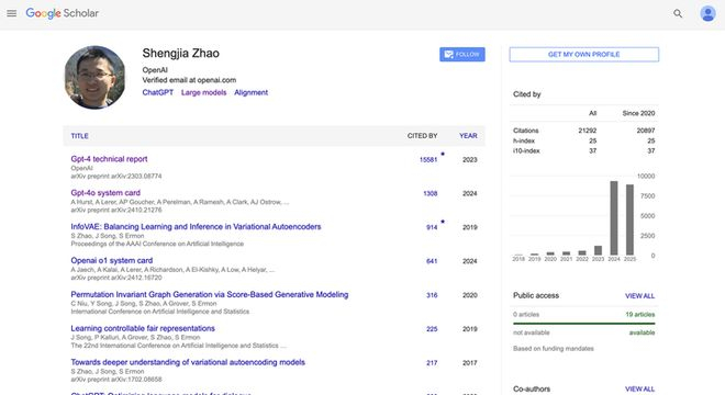 Shengjia Zhao 本科毕业于清华大学计算机系,曾在美国莱斯大学交换,后于斯坦福大学获得计算机科学博士学位,专注于大模型架构、多模态推理和对齐方向的研究。