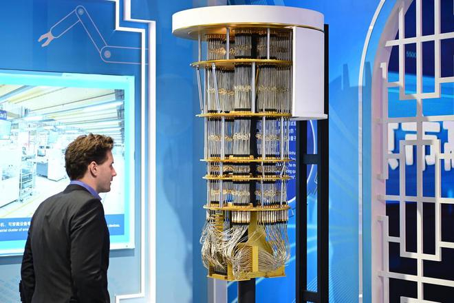 第六届上海进博会上,参观者在中国馆观看可编程量子计算机系统——“祖冲之号”模型。 IC Photo