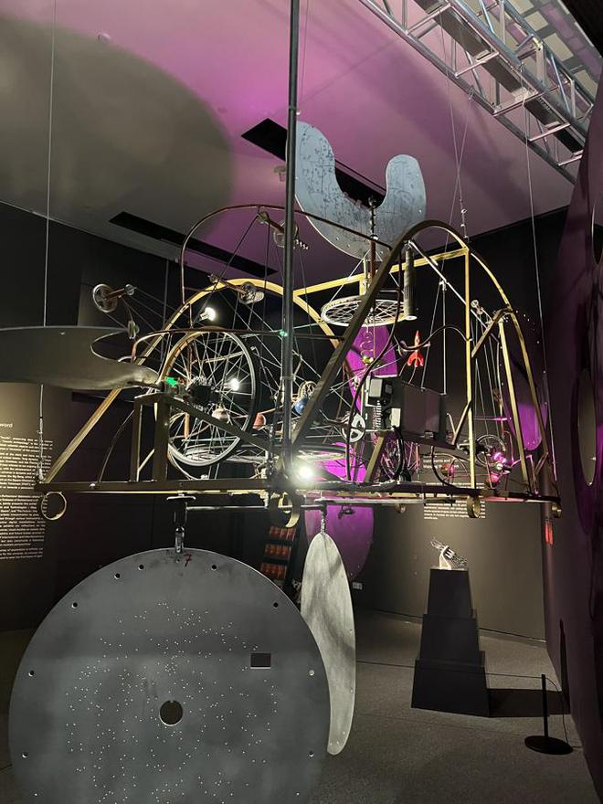 走进展厅,观众首先会被瑞士艺术家帕斯卡尔·贝特克的动态雕塑《巡星雕塑》所吸引。这件作品巧妙利用斯隆数字巡天(SDSS)项目的退役铝板创作而成,这些铝板曾用于2000年启动的大型天文观测项目,其表面600多个精密小孔曾精准定位恒星,通过光纤连接光谱仪收集天体数据。艺术家将这些科学仪器转化为动态艺术装置,让冰冷的科研设备焕发新生,引发人们对宇宙运行规律的思考。