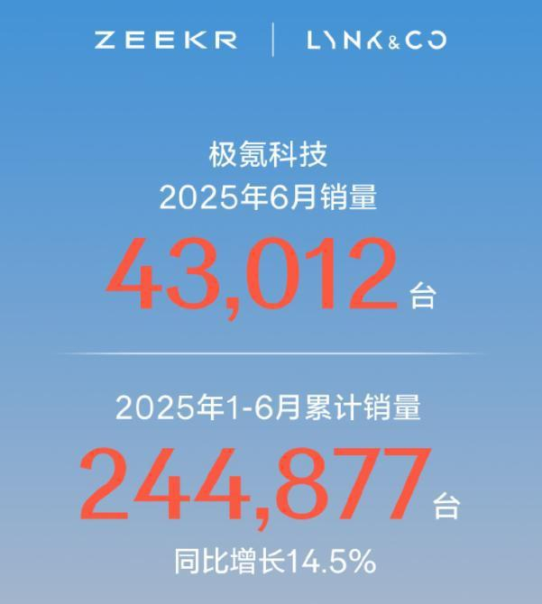 极氪科技以集团品牌计表现亮眼,6月销量达43012辆,上半年累计超24.4万辆,同比增长14.5%,其中领克品牌6月交付26310辆,同比增长7.6%,以高端化路线巩固市场地位。
