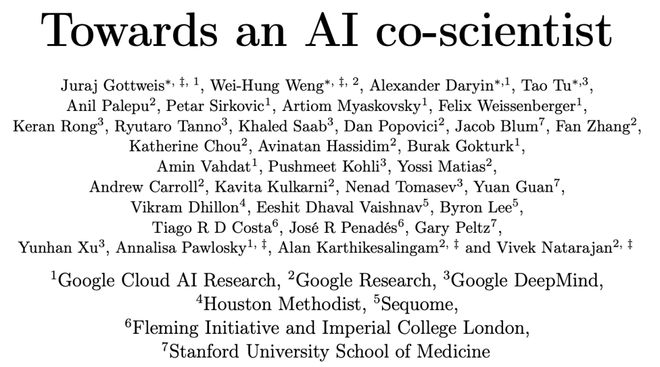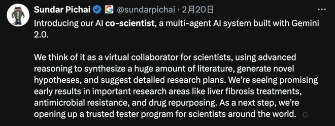 今年2月,谷歌推出一款基于Gemini 2.0构建的多智能体AI系统,作为「虚拟科学合作者」。