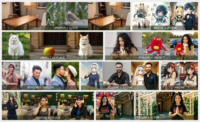 OmniGen2 可从输入图像中提取指定元素,并基于这些元素生成新图像。例如,将物品 / 人物置于新的场景中。当前 OmniGen2 更擅长保持物体相似度而不是人脸相似度。