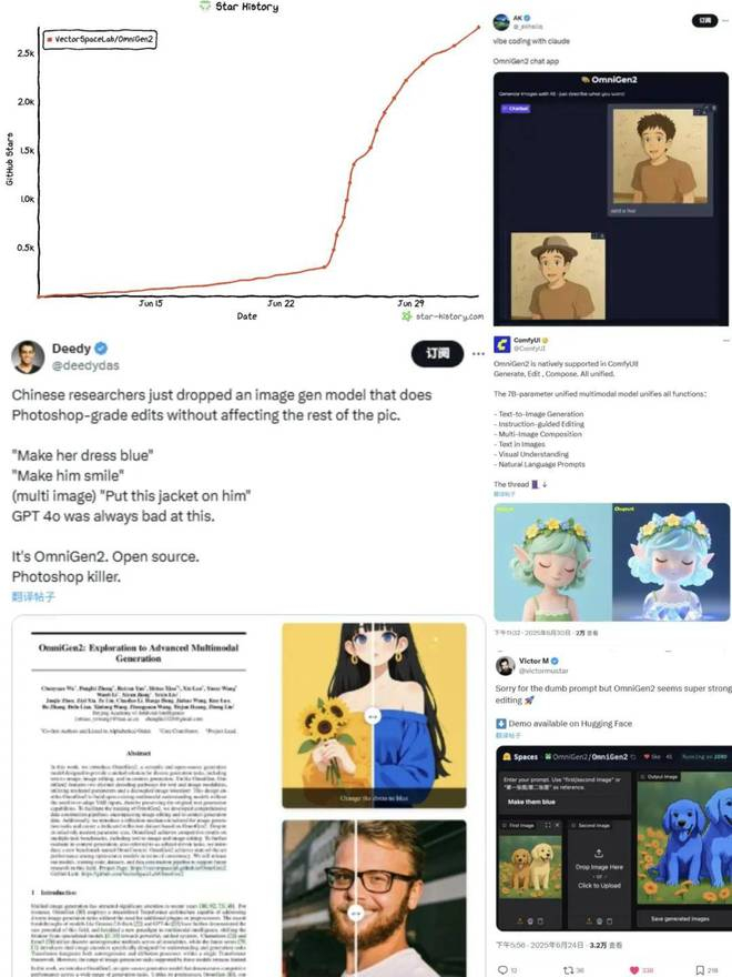 OmniGen2 发布一周 GitHub 星标突破2000,X 上相关话题浏览量数十万