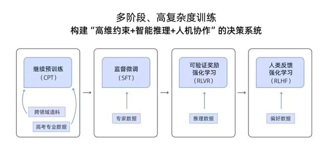 而对于没有标准答案的开放性问题(如专业前景),则通过RLHF(基于人类反馈的强化学习),引入大量真实专家对Agent生成的方案进行打分,让模型的“品味”和“策略观”向人类专家看齐。