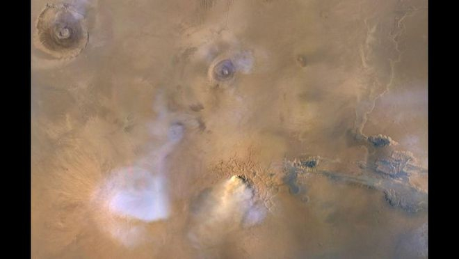火星表面干燥且尘土飞扬,尘卷风在火星上十分常见。与地球相比,火星的重力较小,大气层也更稀薄,这使得火星上的风能够将尘土扬得比地球上的风更高。因此,火星尘卷风的体积可以达到地球尘卷风的三倍之大。美国宇航局(NASA)的“海盗号”探测器是首次报告火星上存在尘卷风的航天器。此后,火星探测器“好奇号”和“毅力号”也拍摄到了尘卷风在荒凉的火星地表上飞驰而过的画面。一般来说,这些旋风可能会对火星着陆器和探测器构成威胁,然而,有些探测器却从尘卷风中受益。2005 年,一个“善良”的尘卷风吹掉了“勇气号”探测器太阳能板上的尘土,提高了其发电能力。