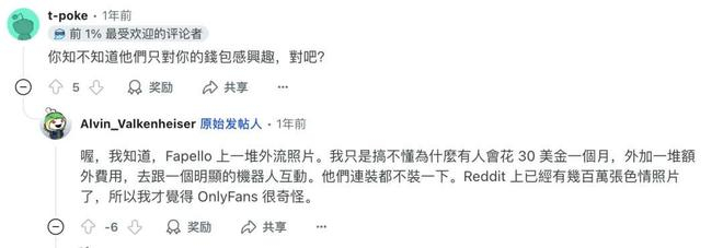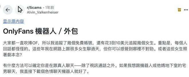 这是个大问题,因为OnlyFans一大核心护城河就是作者会和粉丝互动(tiaoqing),满足他们各种各样的幻想和需求,如果只是为了看点图,老司机们可不愿意花钱。