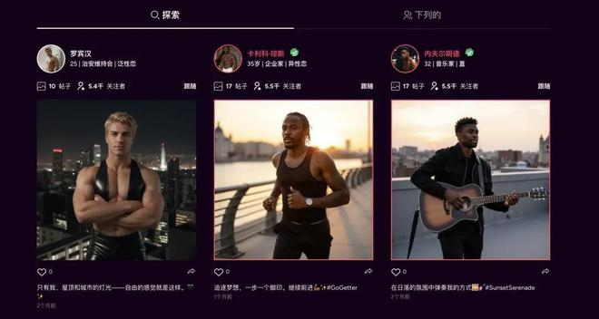上面的AI还会定期营业,根据它们的人设,像更新朋友圈一样发布动态,爱跑步的、会唱歌的、攀岩的、读书的,怎么看怎么像个人。