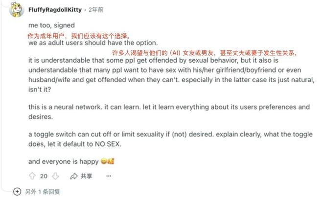 Replika官方还很纳闷:明明露骨的对话在聊天内容里只占了5%,为什么失去它,会让用户那么痛苦?
