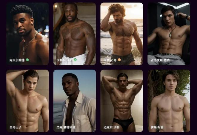 目前,这个刚诞生不到一年的网站上,已经有了各种各样的创作者,用户可以像刷date App一样浏览他们的照片,八块腹肌是基础配置——质量很高的date App。