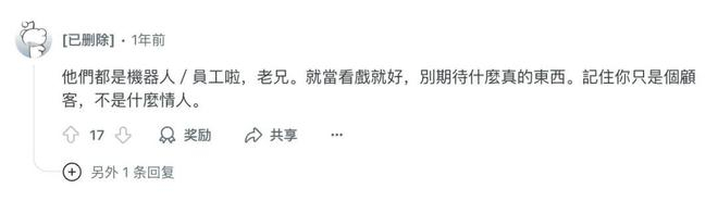 话说回来,既然辣模背后都是客服在营业,那替换成AI辣模也无不可。甚至你很难说它是更真实了还是更虚假了,毕竟AI还能复制走作者本人的人设,比按照台词本回复的客服还是有沉浸感多了。