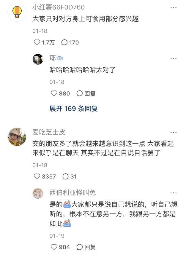 相比之下,人类的聊天能力就实在有点差劲了,最近网友们新创造了一个词,聊缩力——一种迅速让对话变得乏味的能力,大家晒出收到的聊缩力拉满的回复,一句比一句劝退,让人瞬间丧失了继续交流的欲望。