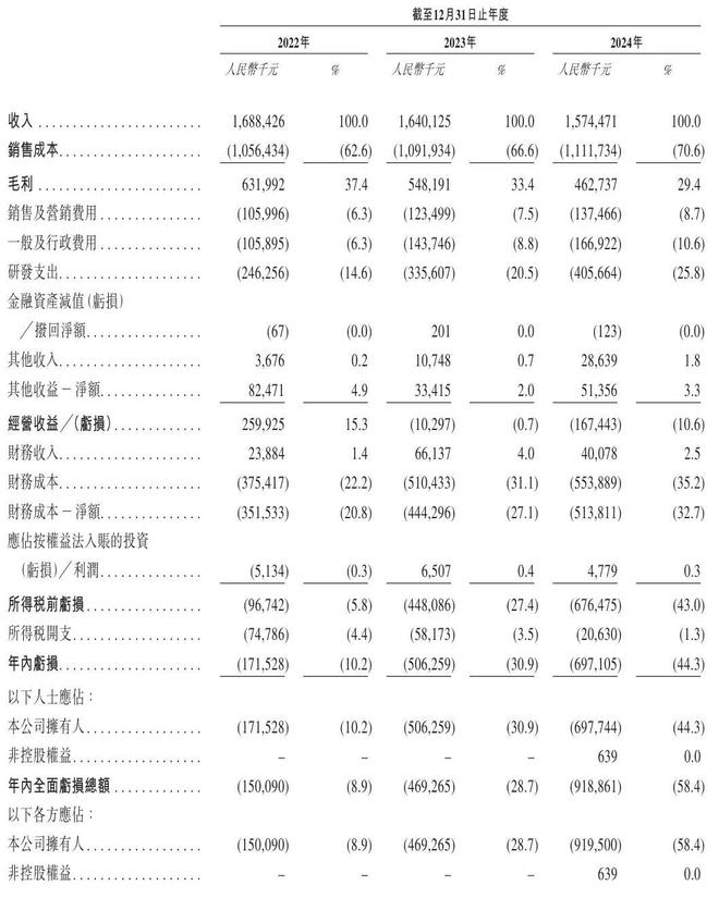 芯迈半导体2022年、2023年、2024年年内亏损分别为1.72亿元、5.06亿元、6.97亿元;年内亏损率分别为10.2%、30.9%、44.3%。