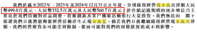公司在申请文件中表示:过往业绩显示公司处于亏损状态且经营现金流出净额持续,2022-2024年经营现金流出净额分别为4.99亿元、3.33亿元及5.61亿元。未来若不能改善盈利状况与现金流,运营资金将受限制。