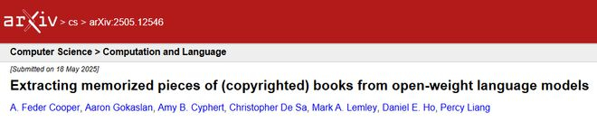 前段时间,斯坦福的团队在 arXiv 上发表了一篇论文,名为《 从开源大模型中提取(受版权保护的)书籍的记忆片段 》。