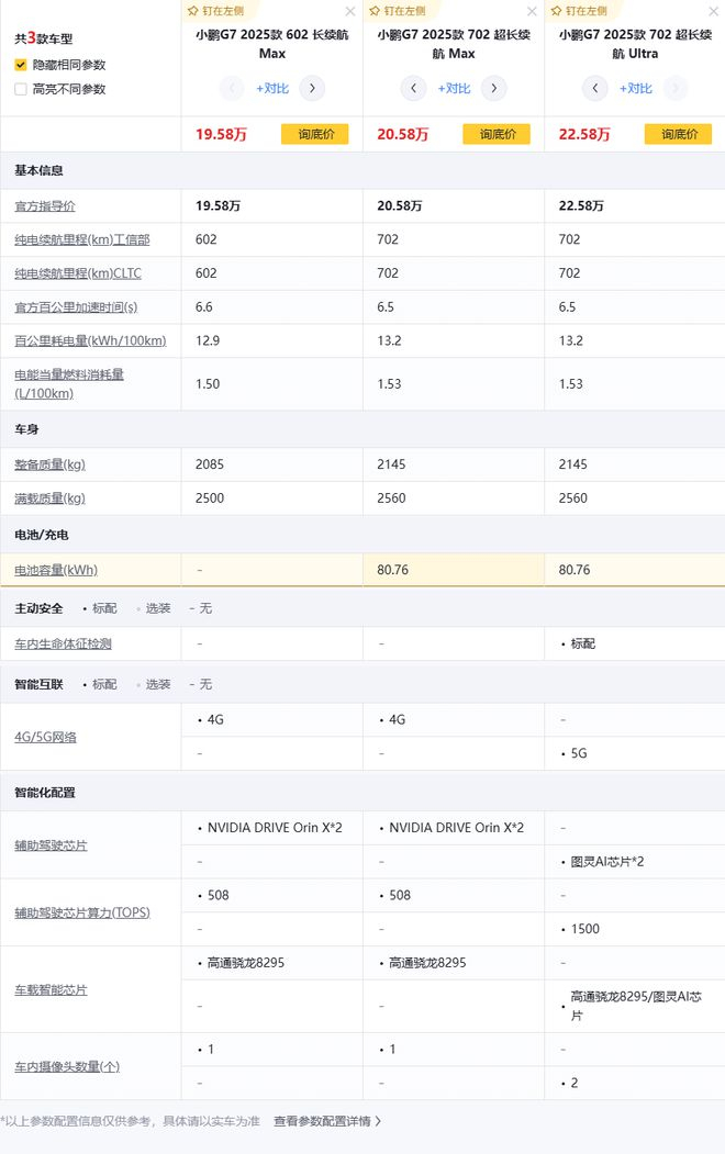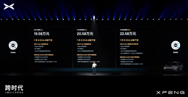 今晚预热了好久的小鹏 G7 终于上市了,一共三个配置,19.58 万 - 22.58 万元。