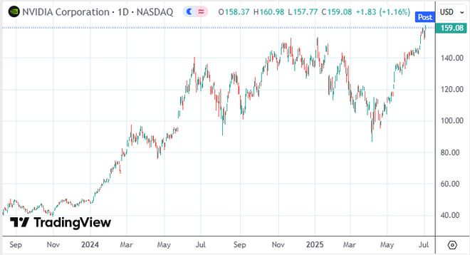 受该消息影响,CoreWeave股价周四收涨8.77%,戴尔科技涨1.41%。英伟达涨1.33%,收于历史新高159.34美元,总市值达3.88万亿美元,盘中股价一度升破每股160美元。