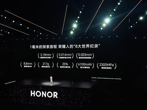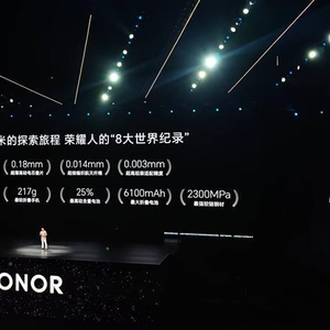 据了解,荣耀Magic V5狂揽8项世界纪录,包括0.18mm超薄高硅电芯芯片、0.014mm超细编织航天纤维、0.003mm超高组装适配精度,8.8mm最薄折叠手机、217g最轻折叠手机、25%最高硅含量电池、6100mAh最大折叠电池、2300MPa最强铰链钢材。