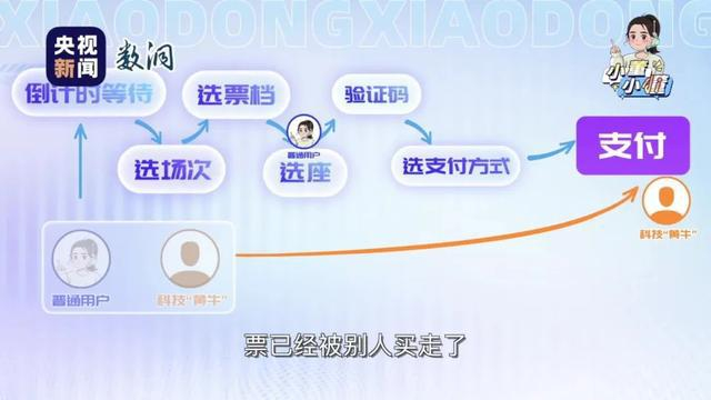 但这只是科技黄牛的初级操作,他们还有速通插件,通过黑客技术绕过中间步骤提前进入支付页面,甚至能抓取后台数据库的信息,突破平台验证机制,瞬间完成下单。你还在选座位的时候,票已经被别人买走了。