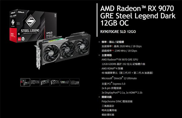 此次Felton Distribution引入的华擎RX 9070 GRE Steel Legend Dark版本,具有2920MHz的加速频率,比公版高出130MHz。