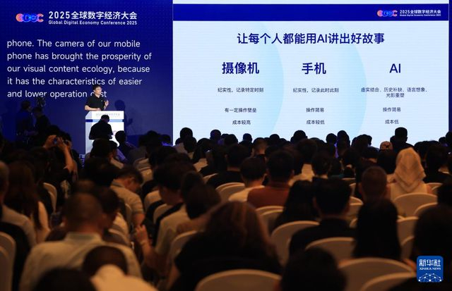 7月3日,快手科技副总裁、可灵AI技术负责人张迪在2025全球数字经济大会“人工智能融合应用发展论坛”主论坛上做主题演讲。