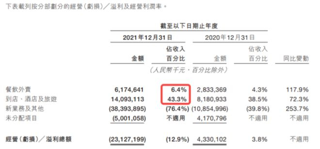 但是也没有赢家。订单数据看似可喜,但是根据一些行业研报和公司的公开财务信息,外卖行业利润是很低的。2021年美团外卖的利润率约为6.4%,跟酒旅业务的43.3%形成鲜明对比。