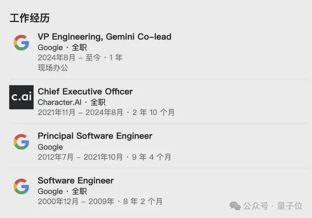 离开谷歌之后,他曾创业担任Character.AI的CEO。