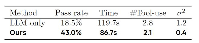相比之下,TaskCraft 生成的任务具有显著更高的通过率,验证时间更短,且工具使用次数更符合“原子任务”的定义(理论最优为:一次输入索引 + 一次目标工具调用)。此外,任务的工具调用次数也更稳定,方差更小,反映出 TaskCraft 在保持原子任务难度的一致性方面具备更强的优势。