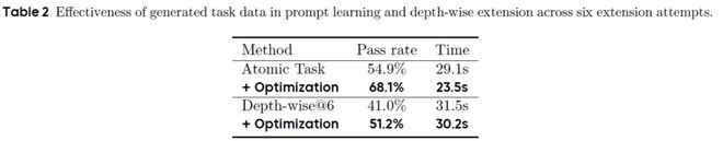 在TaskCraft 的任务构建流程中,Prompt 的设计起到了至关重要的作用。研究团队采用了自举式 few-shot 提示优化机制,基于生成的任务数据对提示进行了迭代优化,从而实现了提示模板的自我进化。如表1,实验结果显示,原子任务的生成通过率从初始的54.9% 提高至 68.1%,同时平均生成时间减少了近 20%。在深度拓展任务中,6 轮任务扩展的成功率由 41% 提升至 51.2%,进一步验证了生成数据在提升任务构建质量与效率方面的显著效果。